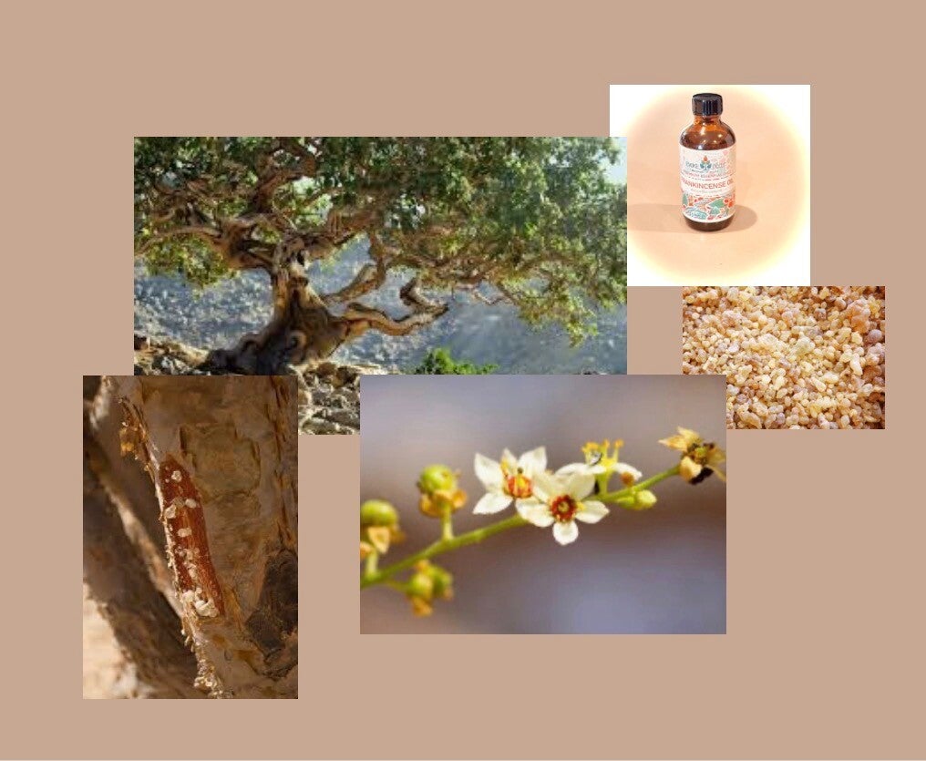 Frankincense comes from the frankincense or olibanum tree, which is harvested as a resinous dried sap.